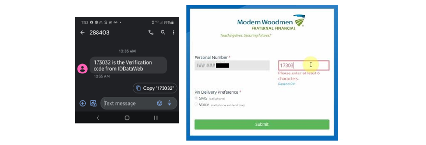 Enter your phone number and select your PIN delivery preference.